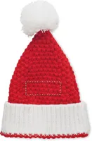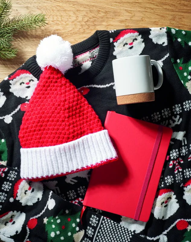 Karácsonyi kötött sapka mandzsettás aljjal, bojttal, puha, rugalmas akril anyagból.