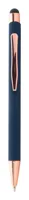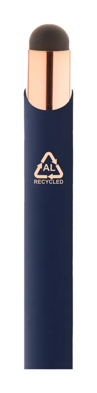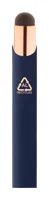 Újrahasznosított alumínium és érintőképernyős golyóstoll gumírozott felülettel és rózsaarany részekkel. Speciális bevonattal rendelkezik a rózsaarany színű tükörgravírozáshoz. Kék tollbetéttel.