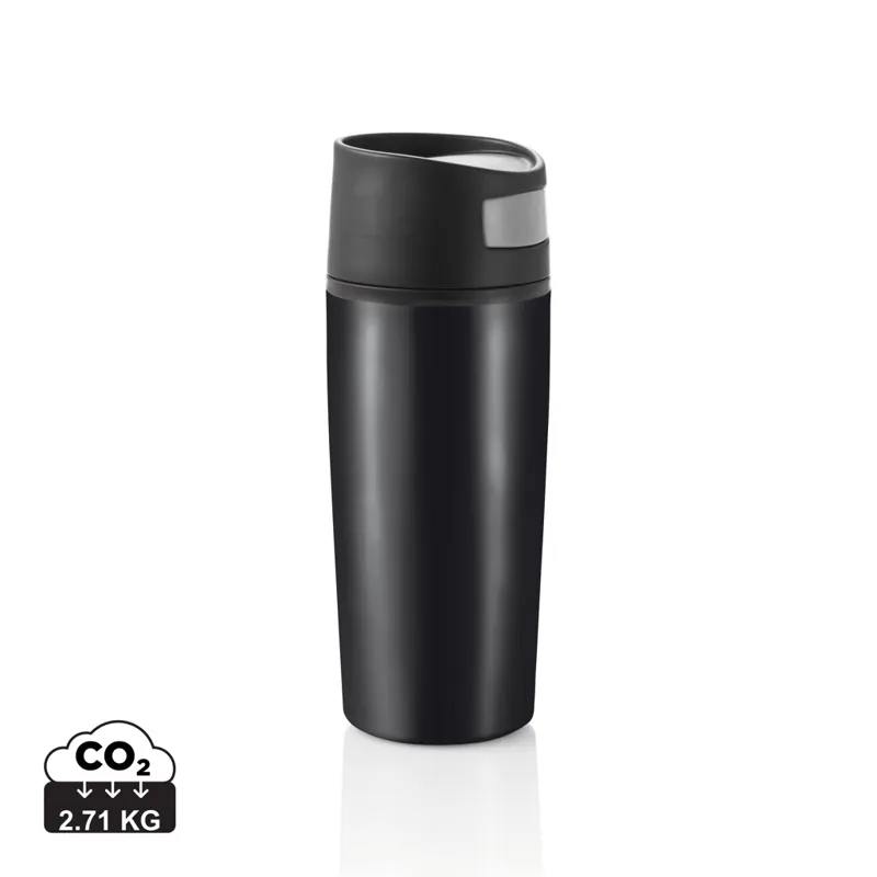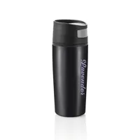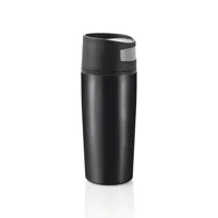 Rozsdamentes acélpohár fekete PP műanyag belsővel és fedéllel, 0,30 l űrtartalommal. A fedél tökéletes záródása abszolút szivárgásmentességet biztosít. Egy kézzel is könnyen nyitható és zárható, így sportolás közben is könnyen használható. Mosogatógéppel ne tisztítsuk. Bejegyzett design®