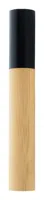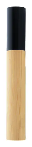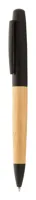 Elegáns, tekerős fekete fém golyóstoll bambusz felülettel és fekete részletekkel. Bambusz tokban, fekete kupakkal és kék tollbetéttel szállítjuk.