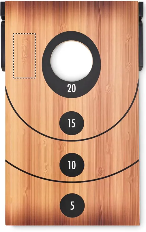 Kétoldalas homokzsákdobáló és amőba játék. Ez a játék, közismert nevén Cornhole, Észak-Amerikából származik. Többnyire a szabadban játsszák, de ha van elég hely, bent is játszható. A játéktábla enyhén ferde és lyukas. A cél az, hogy a kis zsákokat távolról beledobjuk ebbe a lyukba. Minden egyes találat pontot ér. Az nyer, akinek a végén a legtöbb pontja van, vagy aki először elér egy bizonyos pontszámot. A táblát megfordítva klasszikus amőba játékot játszhat rajta. MDF játéktáblát és 8 dobózsákot tartalmaz. FSC 100% | W15.2 | FSC-C213206