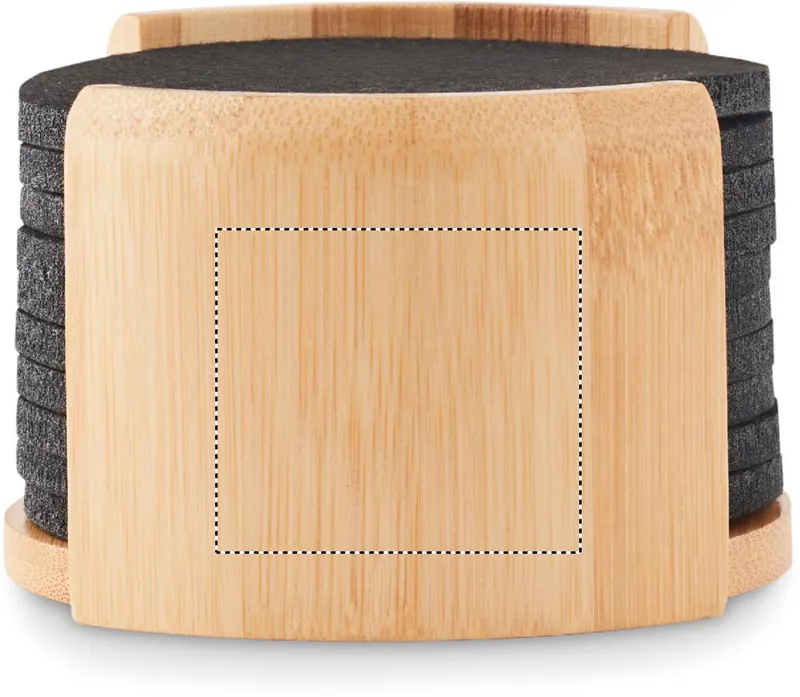 RPET filcből készült, 10 darabos poháralátét készlet bambusztartóban. A bambusz természetes anyag, színében, mintázatában és méretében esetenként eltérő lehet.