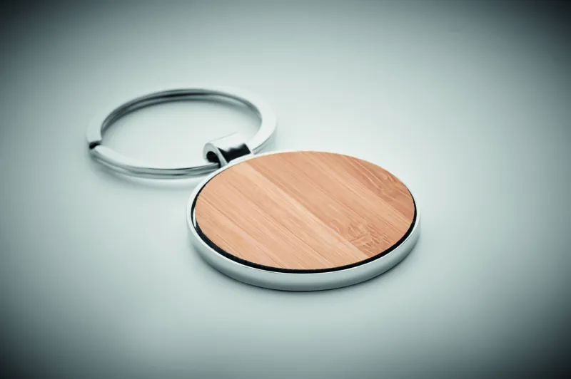 Kerek cink ötvözet kulcstartó bambusz előlappal. A bambusz természetes anyag, termékenként szín- és méretbeli eltérések jelentkezhetnek, ami befolyásolhatja a dekoráció végső eredményét. FSC 100% | N5.7 | FSC- C213206