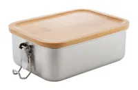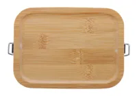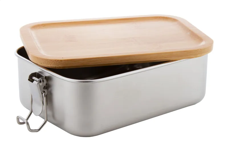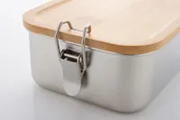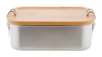 Rozsdamentes acél uzsonnásdoboz bambusz tetővel és biztonsági csatos zárral, 750 ml.