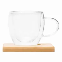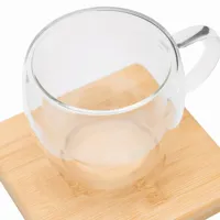 BAMBOO DUO csésze szett: 2 csésze, dupla falú, hőálló, űrtartalom kb. 100 ml, 2 db bambusz csészealjjal