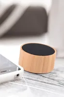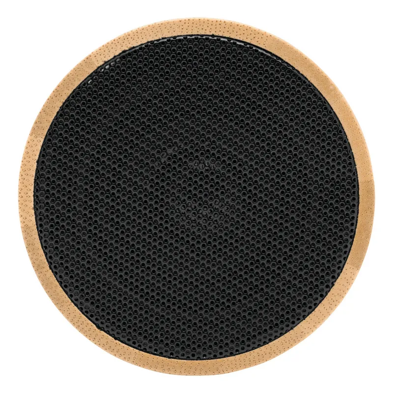 BAMBOO SOUND vezeték nélküli hangszóró: kívül bambusz borítás, zenei kimenet 3 watt, kb. 10 m hatótávolság, párosítható mobiltelefonnal, vezeték nélküli MP3 lejátszóval, táblagéppel stb., töltőkábel (kábel hossza kb. 50 cm, USB Type C), microSD kártyahely, kihangosító funkció, bemeneti teljesítmény: 5V/0,5A, integrált újratölthető 300mAh-ás akkumulátor, csúszásmentes talp