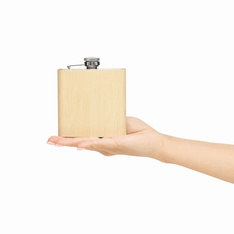 BAMBOO STYLE laposüveg: rozsdamentes acélból, kívül bambusz borítással, csavaros kupakkal, űrtartalom kb. 175 ml