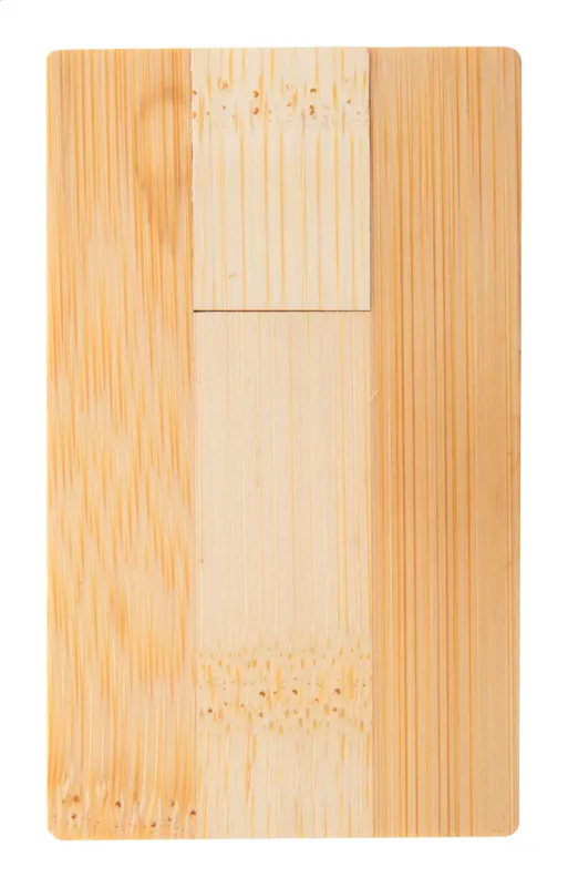 Bankkártya alakú, bambusz USB memória. Memória mérete: 4/8/16/32 GB. USB 2.0.