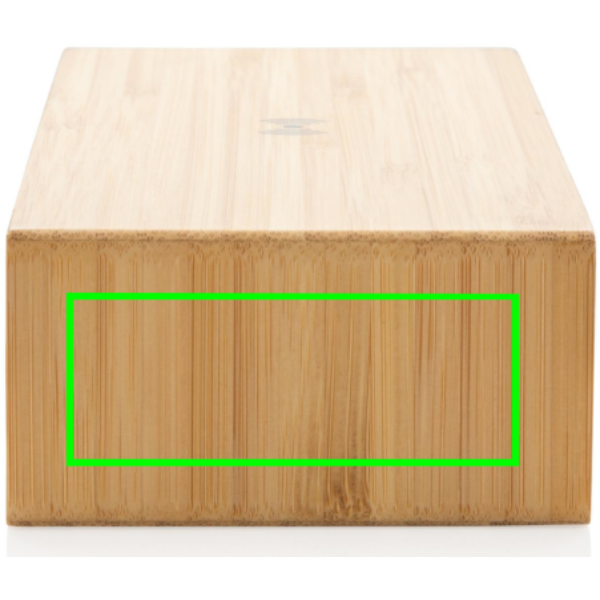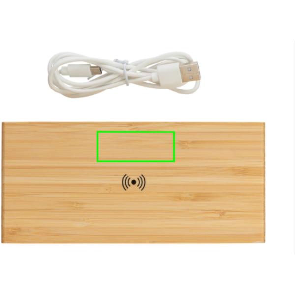 5W-os vezeték nélküli töltős ébresztőóra bambusz külsővel valamint 24 órás időmérővel. A hátulján lévő USB csatlakozó által kábellel tölthető. 150 cm hosszú PVC-mentes TPE micro USB kábellel. Minden QI-vel kompatibilis eszközzel használható, úgy mint az Android telefonok legújabb generációja, iPhone 8 és újabb. Bemenete: 5V/1.5A, Vezeték nélküli kimenete: 5V/1A - 5W, USB kimeneti csatlakozója: 5V/1A.