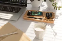 Bambusz irodai rendszerező 10W vezeték nélküli töltővel Barna