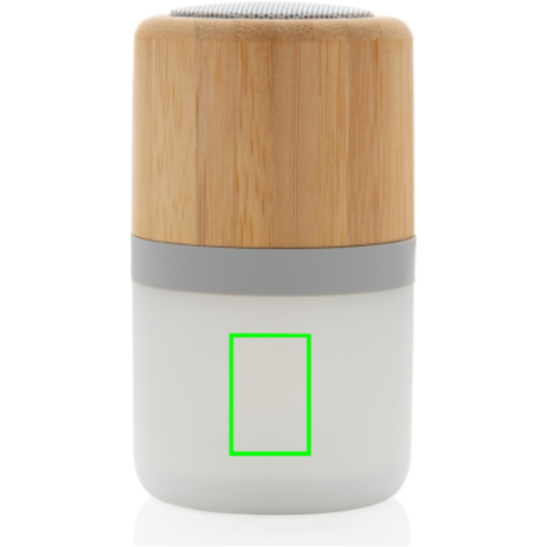 Vezeték nélküli, 3W-os hangszóró természetes bambuszból. Beépített hangulatvilágítással, mely 4 különböző funkcióval rendelkezik. 5.0 vezeték nélküli kapcsolat akár 10 méteres működési távolságig. A 400 mAh akkumulátor segítségével akár 3 órán keresztül is hallgathatja kedvenceit és akár 2 óra alatt újra feltölthető. PVC-mentes TPE C-típusú USB kábellel töltéshez.
