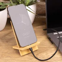 FSC® 100 bambusz telefonállvány. Az állvány rendelkezik egy lyukkal amelyen keresztül a töltőkábelt csatlakoztathatja, így az állvány használata közben könnyen töltheti a telefont. FSC mix kraft dobozban, ami méretéből kifolyólag könnyen átfér a postaládán.