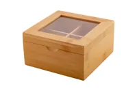 Bambusz teadoboz, átlátszó akril tetővel és 4 rekesszel.