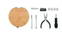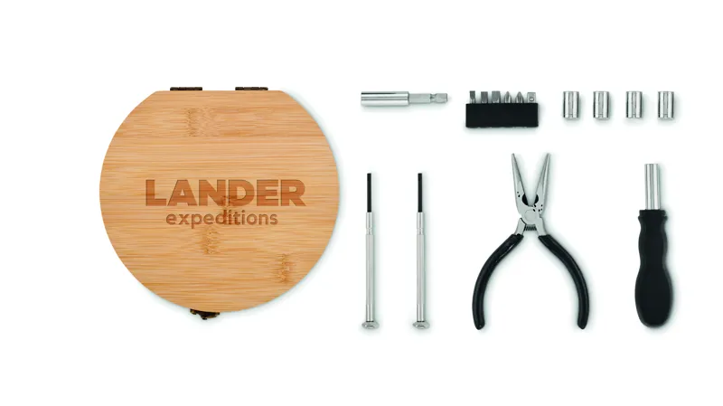 15 részes szerszámkészlet bambusz tokban. Tartalmaz 6 bitfejet tartóban: 3 lapos méretet, 2 csillag méretet (PH1, PH2) és 1 adaptert, 4 dugókulcsot, nyelet, csatlakozót, hegyes fogót és 2 precíziós csavarhúzót. A bambusz természetes anyag, színében, mintázatában és méretében esetenként eltérő lehet. FSC®-certified | FSC 100%, N5.7, FSC-C213206