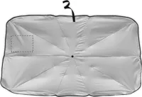 Autós napernyő szélvédőre 190T nyersselyemből, 1 oldalon ezüst réteggel. Kézi nyitással és záródással.
