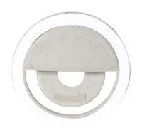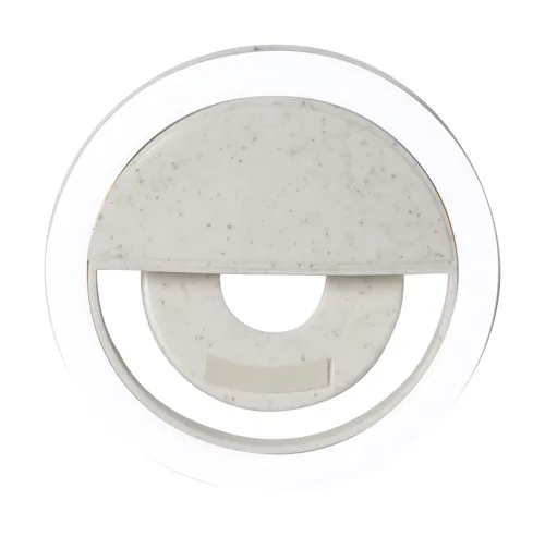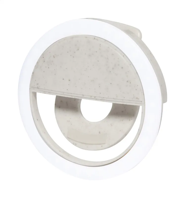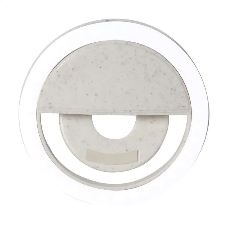 Ökológiai búzaszalma műanyag, kör alakú szelfi lámpa 36 LED-del mobiltelefonokhoz. 3 állítható fényerővel és beépített újratölthető akkumulátorral. USB töltőkábellel szállítjuk.
