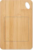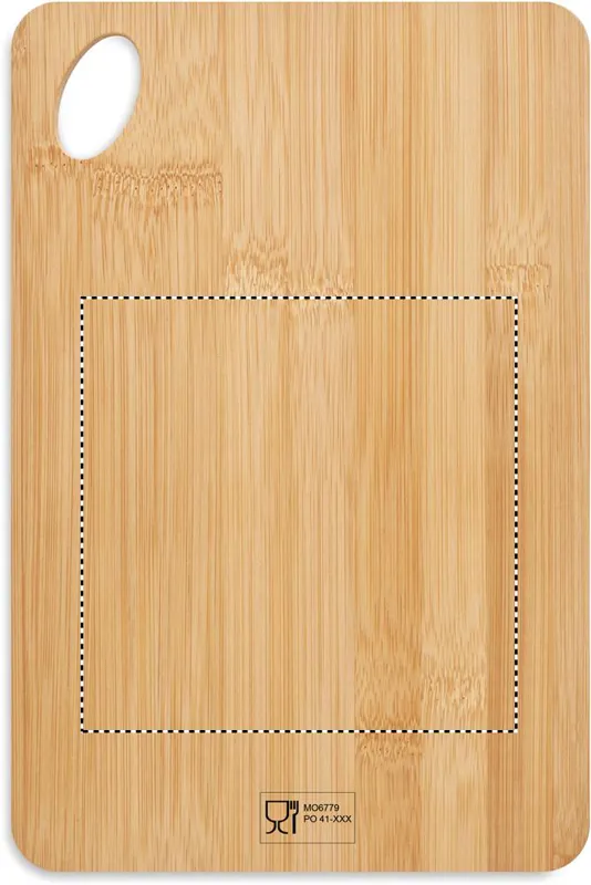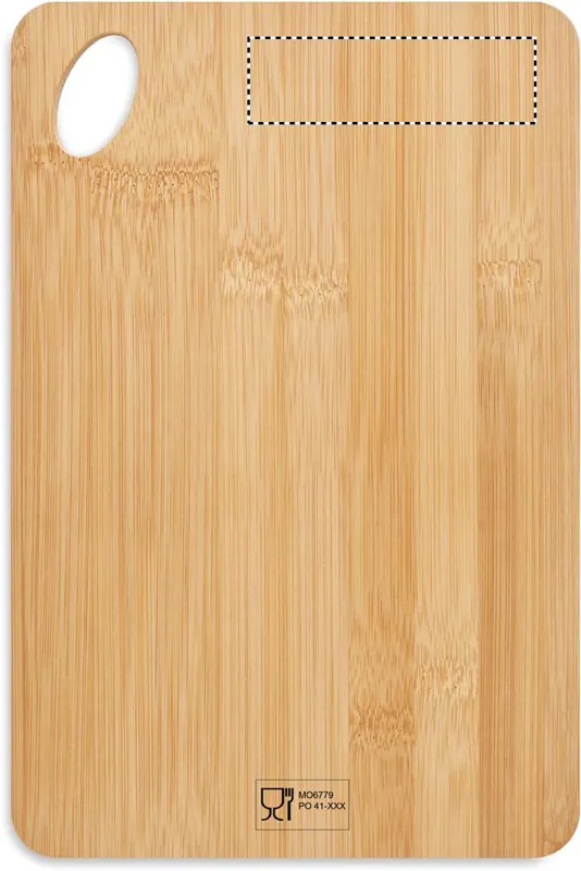 Nagyméretű vágódeszka bambuszból, függesztő lyukkal a sarkán. A bambusz természetes anyag, színében, mintázatában és méretében esetenként eltérő lehet.