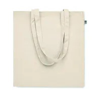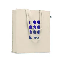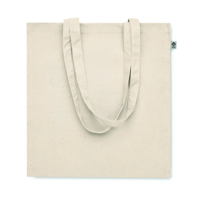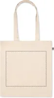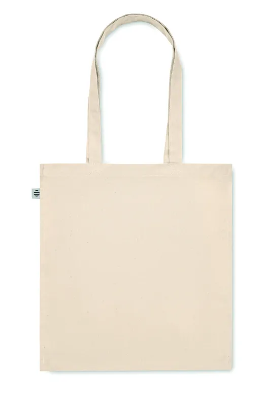Biopamut bevásárlótáska hosszú fülekkel, toldással. 220 g/m² vastag anyag.