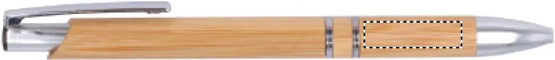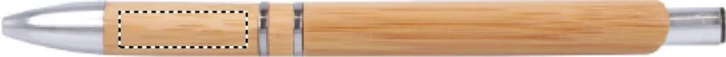 Nyomógombos golyóstoll bambusz toltesttel, alumínium részekkel. Kéken író betéttel. A bambusz természetes anyag, színében, mintázatában és méretében esetenként eltérő lehet.