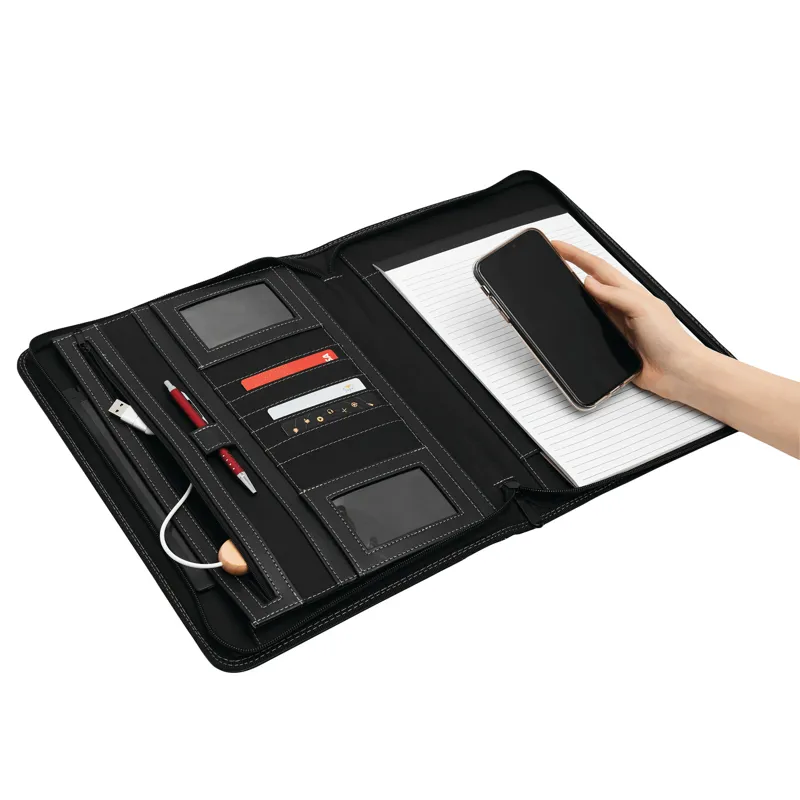 BIG BOSS mappa: DIN A4-es formátumban, körkörös cipzárral, jegyzettömbbel, különböző becsúsztatható zsebekkel és 1 cipzáras becsúsztatható zsebbel, kívül rugalmas hurokkal a toll számára