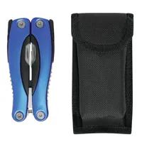 BIG PLIERS multifunkciós szerszám: összecsukható univerzális fogó, alumíniummal bevont markolat, beépített rozsdamentes acél eszközök: fűrész, reszelő, hal kés + mérőskála (inch), konzervnyitó és sörnyitó, kés, csillag csavarhúzó, kis és nagy csavarhúzó, tépőzáras nejlon tokban, öv hurokkal a hátoldalon