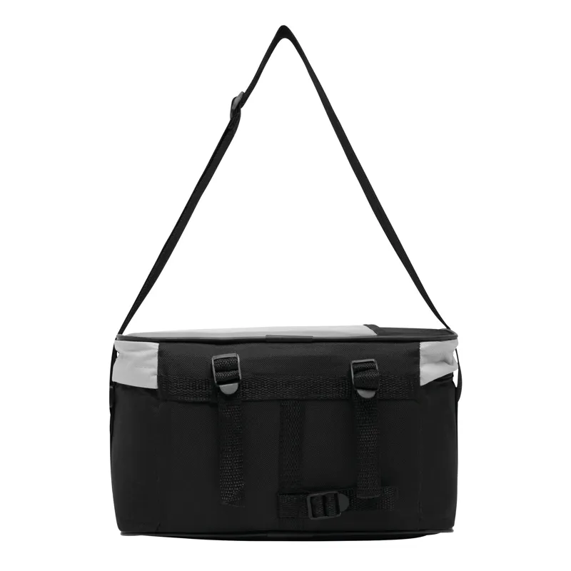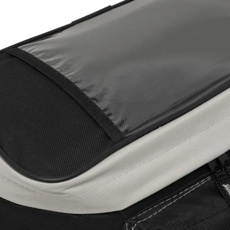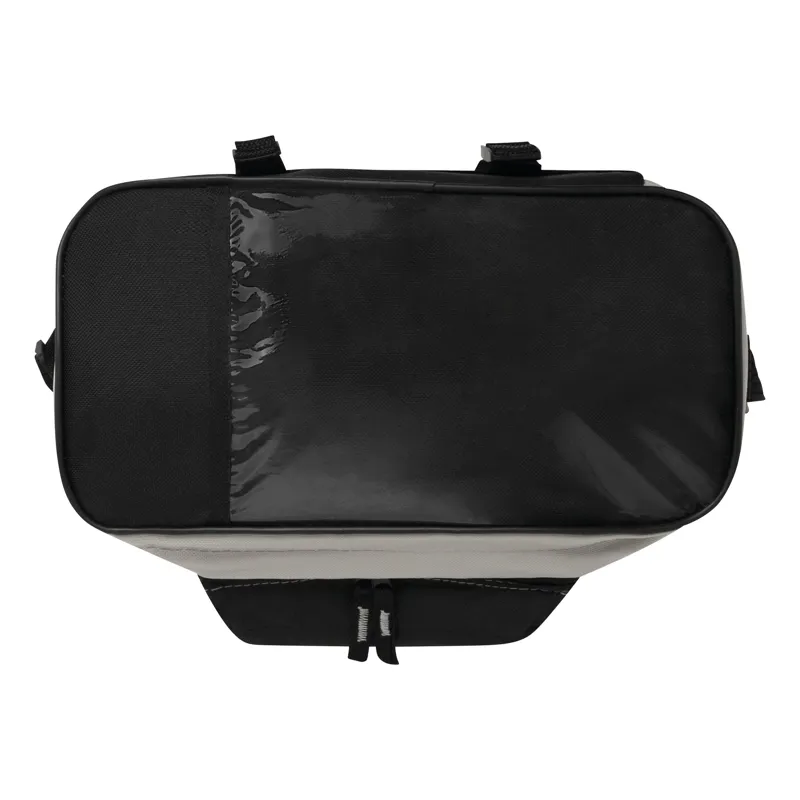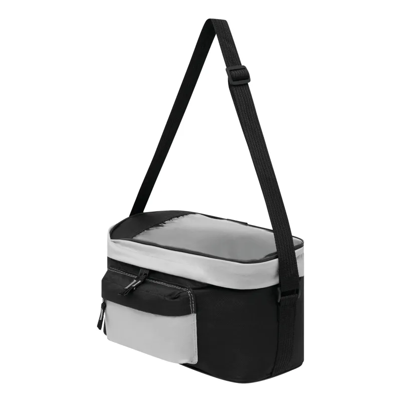 BIKE kerékpárkormányra erősíthető biciklis hűtőtáska cipzáras zsebekkel, hátul pántokkal, állítható vállpánttal, esővédő takaróval és átlátszó zsebbel térkép számára