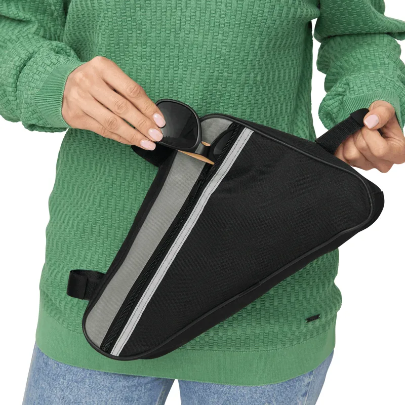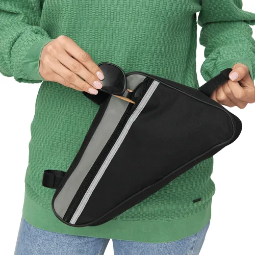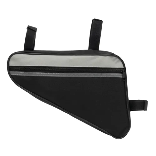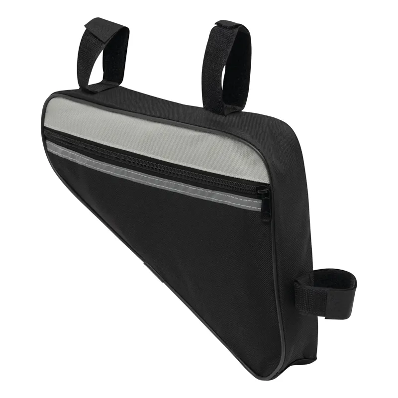 BIKE MASTER kerékpáros, biciklis táska: tépőzáras hevederekkel a kerékpár vázához rögzítéshez, elülső oldalán fényvisszaverő csíkokkal, cipzáras rekesszel, belsejében hálós zsebbel, hátul nagy hálózsebbel