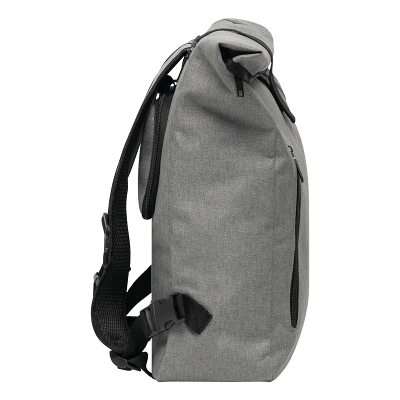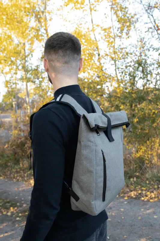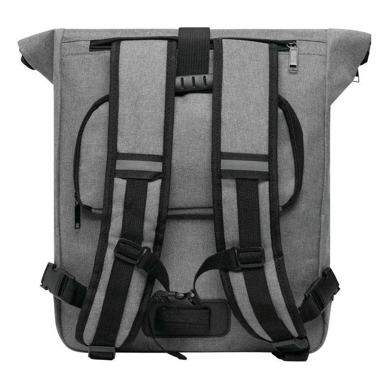 BIKE RACE kerékpáros hátizsák: fő rekesz cipzárral és párnázott belső rekesz laptop vagy tablet számára, nyílása feltekerhető és tépőzárral zárható, párnázott vállpántok, elülső zseb cipzárral, hordozó fogantyú, a vállpántok cipzáras zsebben tárolhatók