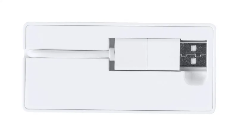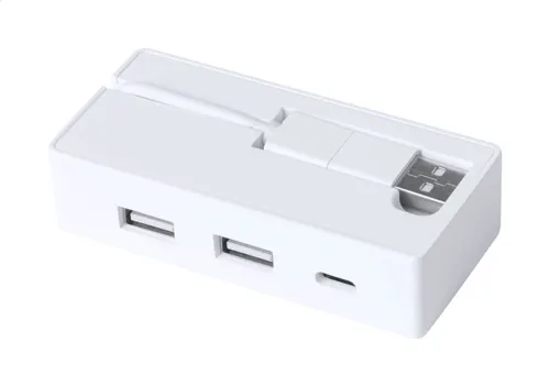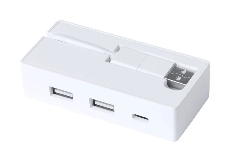 Újrahasznosított ABS műanyag USB hub 2 USB és 1 USB-C porttal, USB 2.0. USB és USB-C csatlakozású kábellel szállítjuk.