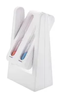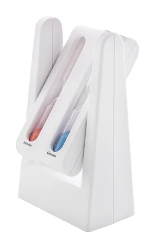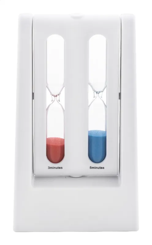 Újrahasznosított ABS műanyagból készült homokóra, forgó 3 és 5 perces homokórákkal.