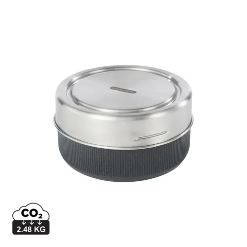 A szilikonfedél megakadályozza a fröccsenést mikrohullámú sütés közben. Alja tartós polipropilénből készült fenntartható forrásból származó faanyaggal kombinálva ami védelmet nyújt az üvegtálnak és mikrohullámú sütés után könnyen megfoghatóvá teszi. A rozsdamentes acélból készült fedél az aljára csavarozva szivárgásmentes tömítést biztosít. Mosogatógépben mosható.
