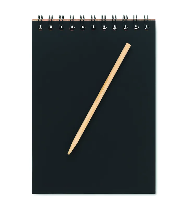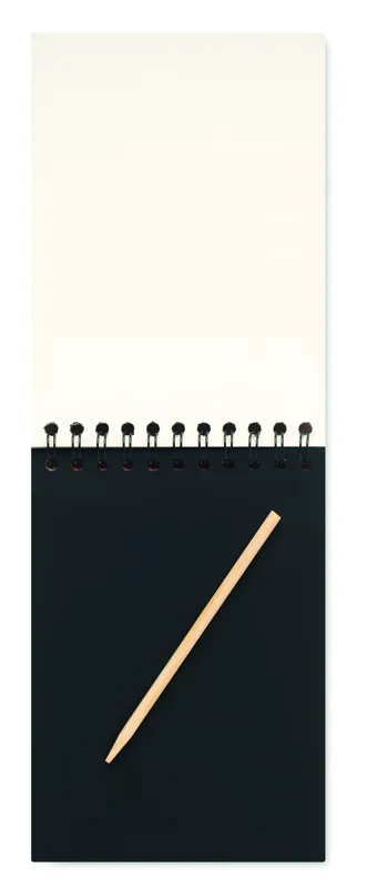 Gyűrűs kraft papír képkarcoló füzet, 10 fekete, újrahasznosított papírból készült képkarcoló lapot és fatollat tartalmaz.