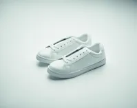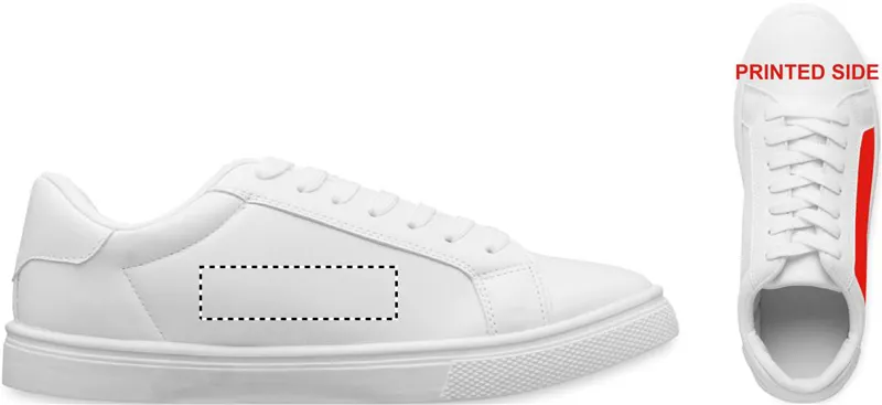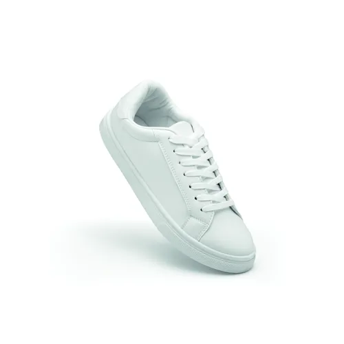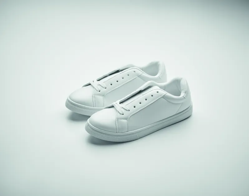 Könnyű PU tornacipő gumi talppal és poliészter fűzővel. Méret: 40. Fehér cipősdobozban.