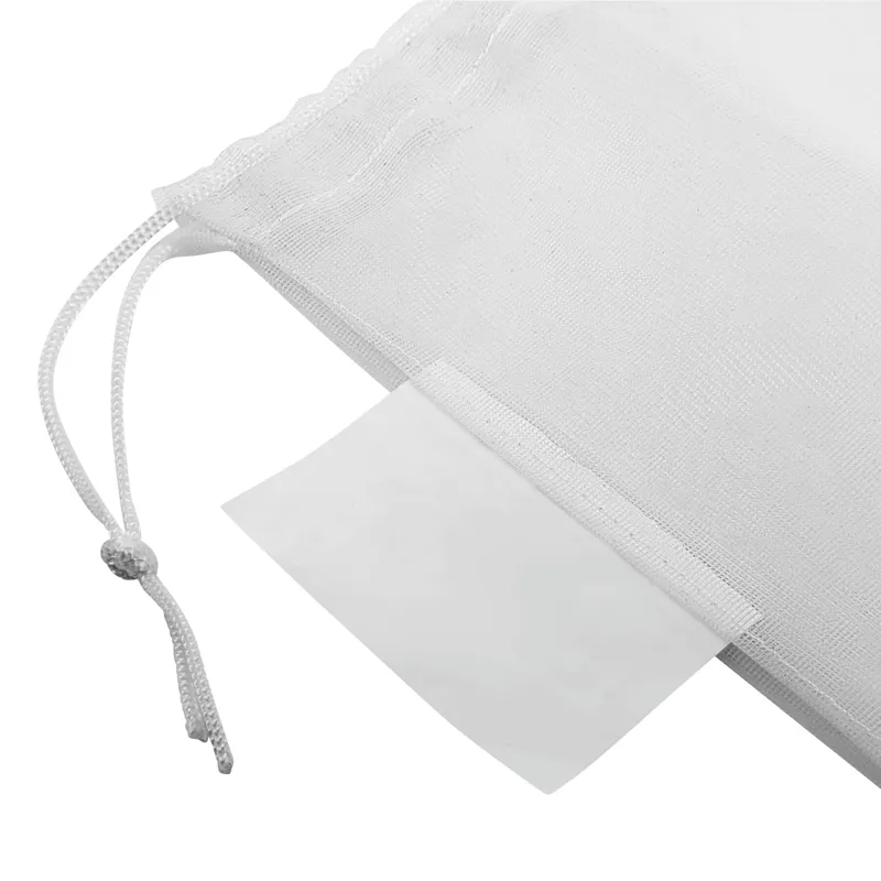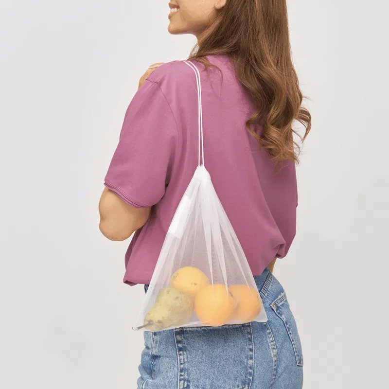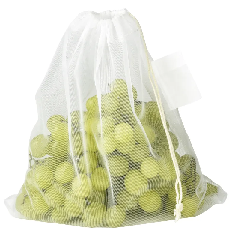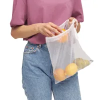 BLUE PLANET hálós táska, tasak gyümölcs és zöldség számára: újrahasznosított anyagokból készült, húzózsinórral zárható, mosható, újrafelhasználható, emblémázható címkével