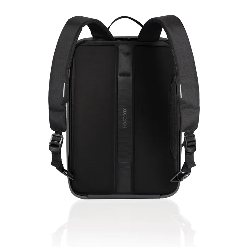 Utazzon még kellemesebben azzal a tudattal, hogy dolgai biztonságban vannak az új Bobby Bizz 2.0 hátizsákban. Bármilyen üzleti alkalomról legyen is szó, ezt a hátizsákot pillanatok alatt aktatáskává alakíthatja a vállpántok hátsó zsebbe helyezésével. Annak érdekében, hogy Ön és holmija biztonságban legyen, az ikonikus Bobby lopásbiztos dizájn nem rendelkezik elülső hozzáféréssel, rendelkezik viszont rejtett cipzárral és rejtett RFID-védett zsebbel. Vágásálló anyaggal és beépített fémvázzal kiegészítve. A Bobby Bizz 2.0-t biztonságosan rögzítheti bármely tárgyhoz a jobb oldali pántba integrált cink ötvözet zárral. A hátizsák belsejében párnázott rekeszek találhatók: egy 16"-es laptopnak, egy 12,9"-es tabletnek és minden professzionális felszerelésnek. RPET újrahasznosított anyagból, AWARE™ nyomjelzővel, ami igazolja az újrahasznosított anyagok ellátási láncát. 33% újrahasznosított anyag tartalom.