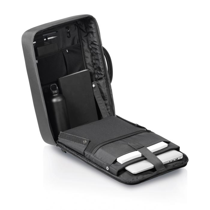 Utazzon még kellemesebben azzal a tudattal, hogy dolgai biztonságban vannak az új Bobby Bizz 2.0 hátizsákban. Bármilyen üzleti alkalomról legyen is szó, ezt a hátizsákot pillanatok alatt aktatáskává alakíthatja a vállpántok hátsó zsebbe helyezésével. Annak érdekében, hogy Ön és holmija biztonságban legyen, az ikonikus Bobby lopásbiztos dizájn nem rendelkezik elülső hozzáféréssel, rendelkezik viszont rejtett cipzárral és rejtett RFID-védett zsebbel. Vágásálló anyaggal és beépített fémvázzal kiegészítve. A Bobby Bizz 2.0-t biztonságosan rögzítheti bármely tárgyhoz a jobb oldali pántba integrált cink ötvözet zárral. A hátizsák belsejében párnázott rekeszek találhatók: egy 16"-es laptopnak, egy 12,9"-es tabletnek és minden professzionális felszerelésnek. RPET újrahasznosított anyagból, AWARE™ nyomjelzővel, ami igazolja az újrahasznosított anyagok ellátási láncát. 33% újrahasznosított anyag tartalom.