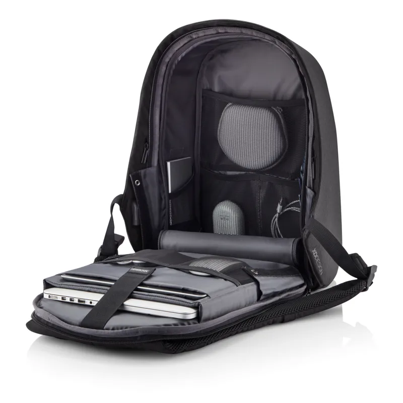 A Bobby Hero vonal a lopásbiztos hátizsákok legújabb generációja melynek segíségével biztonságosan és gondtalanul utazhat és mozoghat. Vágásbiztos kialakítás, rejtett cipzárak és zsebek. A Bobby további kényelmes funkciói a beépített USB kimenet, vízlepergető anyag, világító biztonsági csíkok és mindemellett a bőrönd húzójára akasztható. Belsejében párnázott rekeszek 15,6"-es laptop valamint legfeljebb 12,9"-es tablet számára. RPET anyagokból AWARE™ nyomnyomjelzővel mely garantálja a valóban újrahasznosított anyagok használatát. 29% újrahasznosított anyag tartalom. Bejegyzett design®