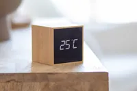 Bambusz borítású digitális óra és hőmérő, fehér LED háttérvilágítással. USB töltőkábellel vagy 3 db AAA elemmel működik. Elem nélkül, USB töltőkábellel szállítjuk.