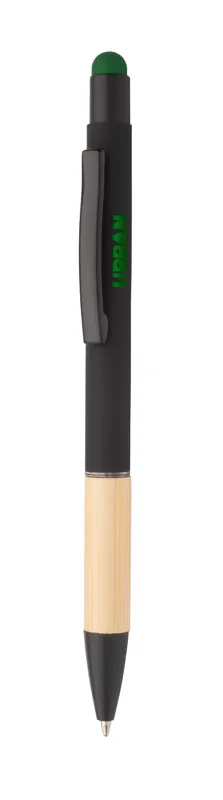 Alumínium, érintőképernyős golyóstoll bambusz markolattal és gumírozott felülettel. Különleges bevonattal, melynek gravírozása után az embléma az érintőképernyős véggel harmonizáló színben jelenik meg. Kék tollbetéttel szállítjuk.