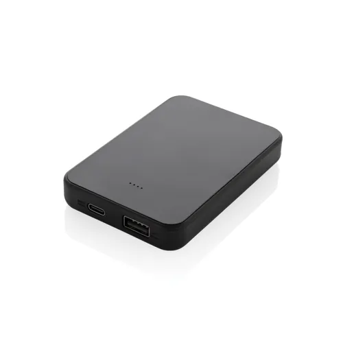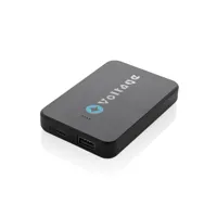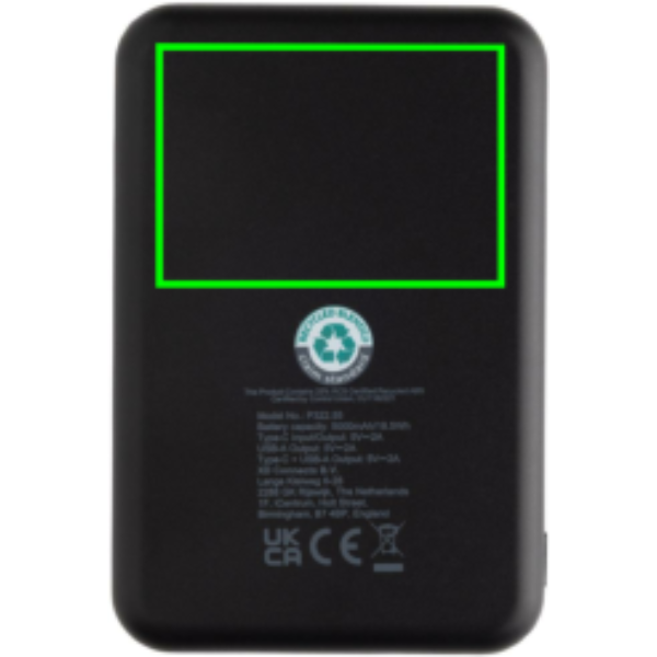 5000 mAh-s zsebméretű powerbank USB-C bemeneti/kimeneti és egy további USB-A porttal. A tok RCS újrahasznosított ABS műanyagból készült. Az RCS-tanúsítvány biztosítja az újrahasznosított anyagok ellátási láncát. Teljes újrahasznosított anyagtartalom: 25% a termék összsúlya alapján. Teljesen feltöltött állapotban a powerbankkel akár kétszer újratölthető a mobiltelefon. Hosszú élettartamú, A-fokozatú, 5000 mAh-s lítium-polimer akkumulátort tartalmaz. A teljesítményjelzők jelzik a fennmaradó energiaszintet. C típusú bemenet 5 V/2,4 A; USB-A: kimenet 5 V/2,4 A, C típusú kimenet: 5 V/2 A A termék és tartozékai PVC-mentesek. RCS újrahasznosított TPE töltőkábellel. FSC® mix csomagolásban.