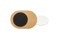 Mágneses, bambuszból készült autós mobiltartó, szellőzőre rögzíthető. Öntapadó fémlemezzel együtt, kraft papír dobozban szállítjuk.