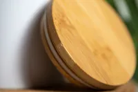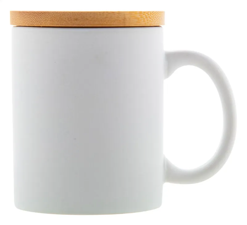 Kerámia bögre matt felülettel és bambusz fedéllel, 370 ml. Kraft papír dobozban szállítjuk.