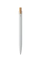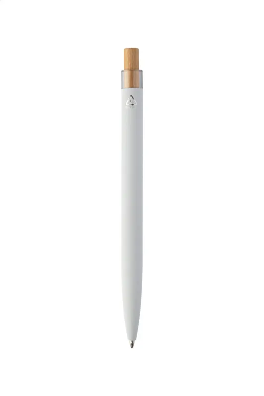Újrahasznosított alumínium golyóstoll gumírozott felülettel, bambusz gombbal és króm klipsszel. Speciális bevonattal rendelkezik, amely különlegesen fényessé teszi a gravírozott emblémát. Kék tollbetéttel szállítjuk.