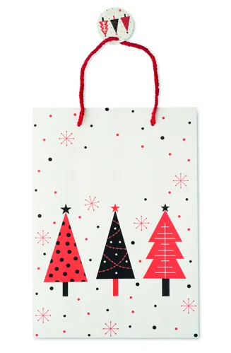 Nagyméretű, karácsonyi ajándéktasak papírból (30%-ban újrahasznosított), ajándék kísérő címkével. 150 g/m². FSC®-certified | FSC MIX, P5.3, FSC- C213206