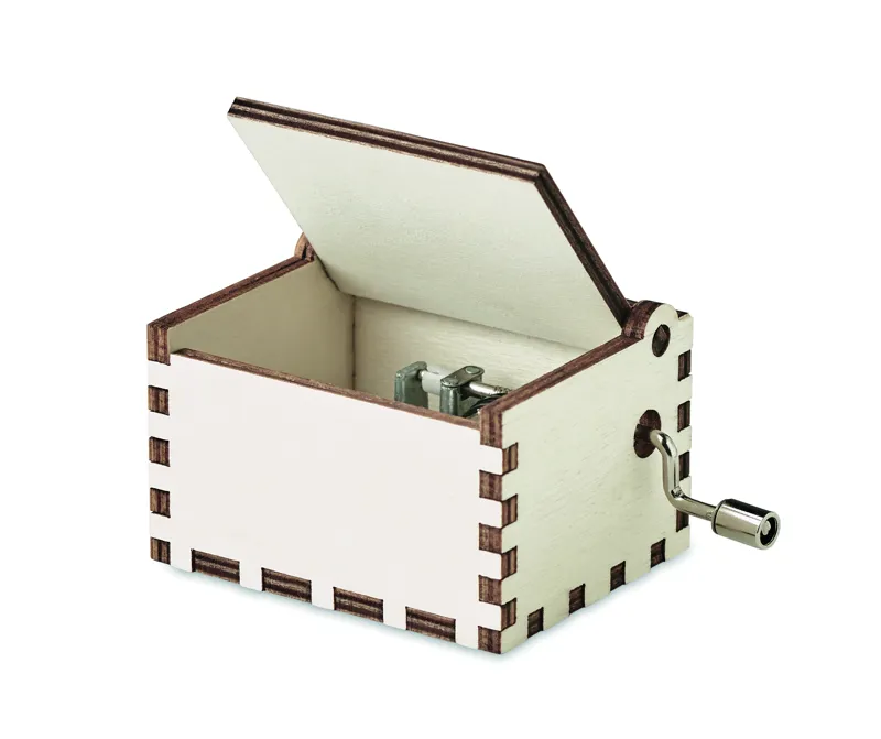 Fából készült karácsonyi kézi tekerős zenedoboz. 'We Wish You a Merry Christmas' dallamot játszik le. Működtetéséhez nincs szükség elemre.