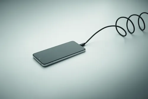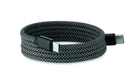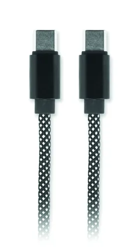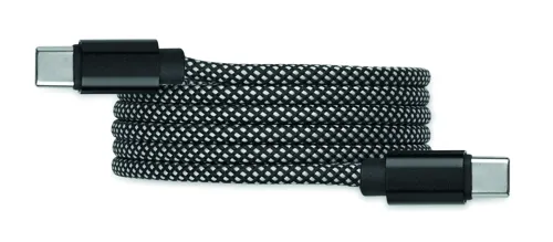 Gubancolódásmentes, fonott mágneses kábel GRS-tanúsított RPET-ből és alumíniumból. C-C-típusú kábel, 60 W-os gyorstöltés, 1 m hossz. Rendezetten összetekerhető, nem csomózódik össze.