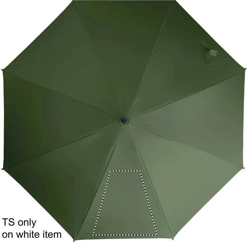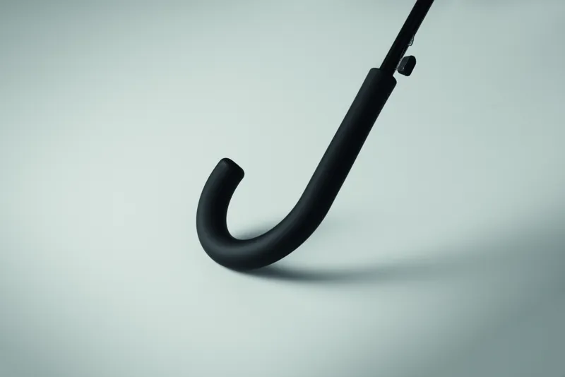 23 colos, egyenes, automatikusan nyíló esernyő fekete fém rúddal, üvegszálas bordákkal és 190T nyersselyem pongee anyagból készült panelekkel. Műanyag cikkelyzáró elemek és csúcs. Gumírozott, PP műanyag hajlított markolat. Kézi záródás.
