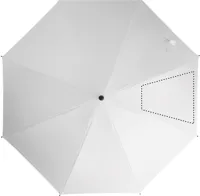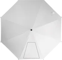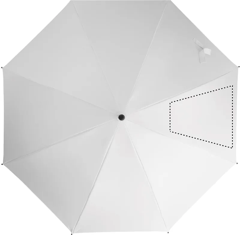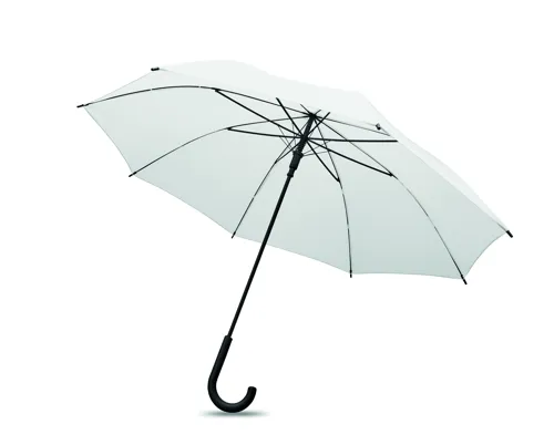 23 colos, egyenes, automatikusan nyíló esernyő fekete fém rúddal, üvegszálas bordákkal és 190T nyersselyem pongee anyagból készült panelekkel. Műanyag cikkelyzáró elemek és csúcs. Gumírozott, PP műanyag hajlított markolat. Kézi záródás.