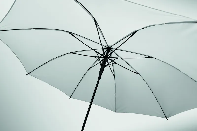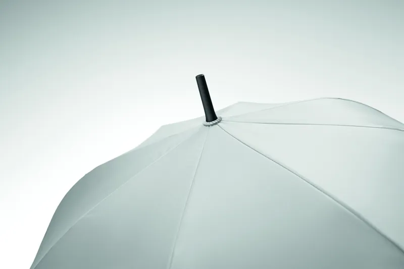 23 colos, egyenes, automatikusan nyíló, szélálló esernyő, teljes üvegszálas vázzal és 190T nyersselyem pongee anyagból készült panelekkel. Műanyag cikkelyzáró elemek és csúcs. Gumírozott, PP műanyag hajlított markolat. Kézi záródás.