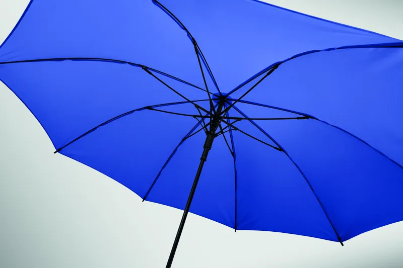 23 colos, egyenes, automatikusan nyíló, szélálló esernyő, teljes üvegszálas vázzal és 190T nyersselyem pongee anyagból készült panelekkel. Műanyag cikkelyzáró elemek és csúcs. Gumírozott, PP műanyag hajlított markolat. Kézi záródás.